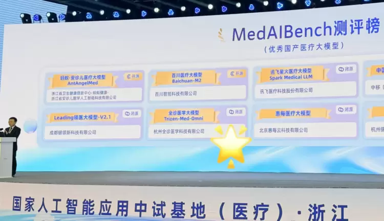 近日,在国家人工智能应用中试基地(医疗)·浙江举办的行业年度盛会上,备受瞩目的“MedAIBench医疗大模型测评榜”正式揭晓。在这份被誉为“医疗AI国考”的成绩单中,“Ai好医生诊疗支持系统” 同源底层基座模型——全诊医学大模型(Trizen-Med-Omni)凭借卓越的技术底座,从众多顶尖模型中脱颖而出,成功入选“优秀国产医疗大模型”榜单。