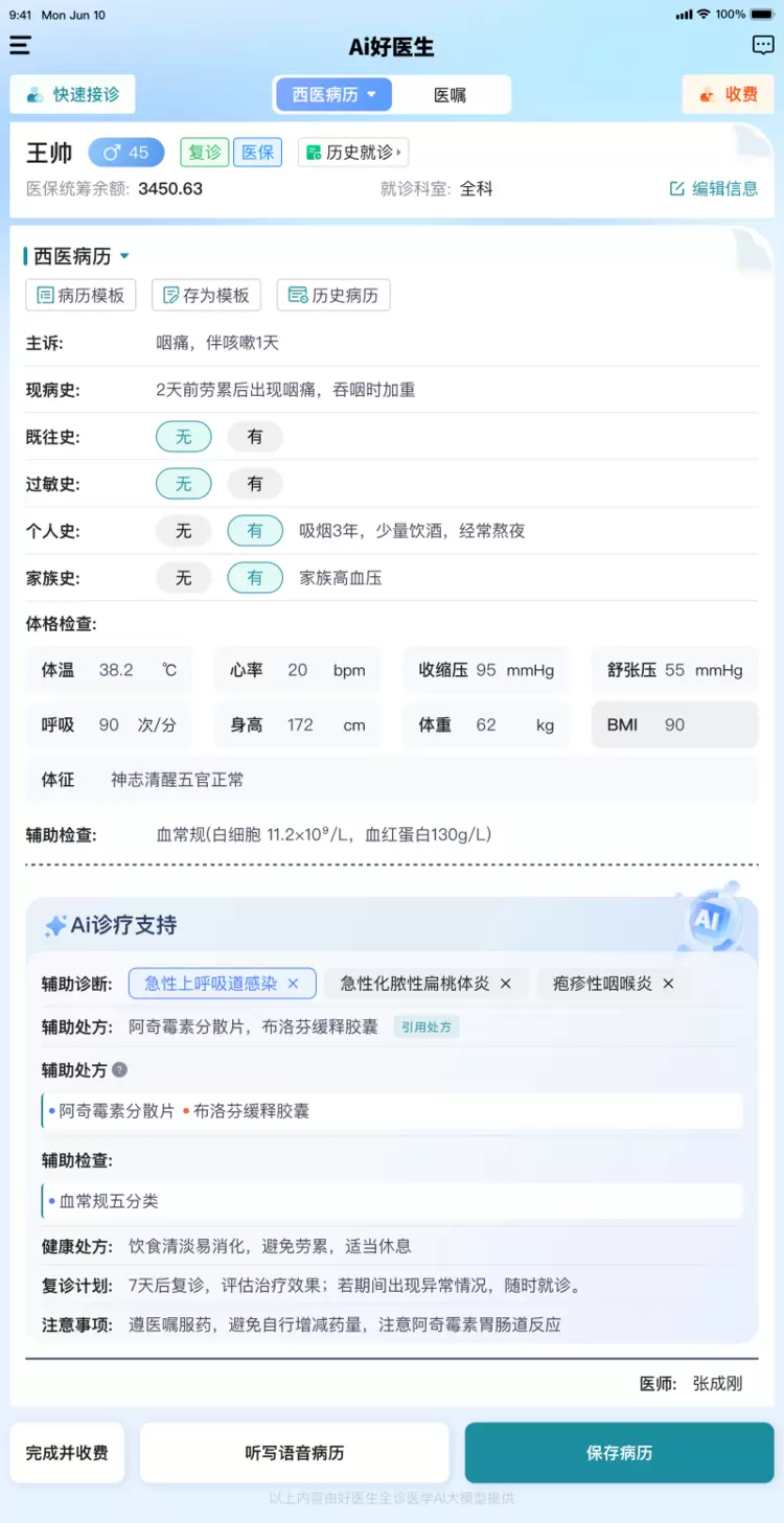 ● 病历书写“更懂行”: 基于获奖模型在“智能辅助病历撰写”维度的满分表现,系统在真实门诊嘈杂环境下的语音识别与病历生成准确率已达行业顶尖。