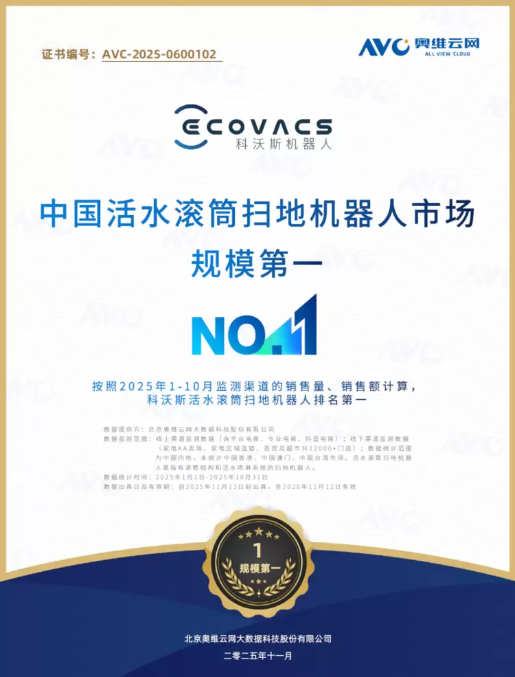 - 科沃斯领跑2025滚筒年,权威数据认证市场第一