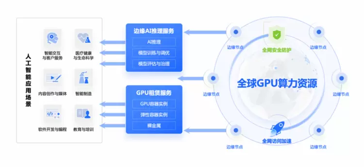 在边缘AI领域,白山云基于成熟的全球边缘节点网络与自研异构计算框架,于2025年初正式推出边缘智算云平台“白山智算”。白山智算致力于破解集中式计算在时延与成本上的瓶颈,提供从GPU IaaS到MaaS的全方位服务,并专门针对边缘AI推理进行深度优化,为用户提供高性能、低成本的AI Infra解决方案,切实破解AI应用落地的“最后一公里”难题。
