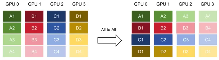 再以应用更广泛、也标志着AI真正投入实战的推理场景,如目前越来越火的多模态大模型推理为例,虽然它不需要做梯度同步,但All-Reduce性能提升仍可能作用于多节点推理的协调或一致性生成中的多GPU同步;All-to-All性能提升在推理中更加关键,其生成速度(或等待时间)、服务吞吐(单位时间能否服务更多客户)、应用规模(能否支持更多模型或更长序列)等关键指标,都可借势得到进一步优化。