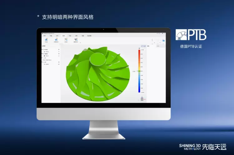 同时,SHINING3D Inspect成功获得了德国国家计量研究所(PTB)的精度双重认证。PTB作为全球计量领域最权威的机构之一,其认证标志着该软件在精确性、可靠性和数据兼容性方面均已达到国际顶尖标准,为用户提供全球公认的、值得信赖的检测结果。