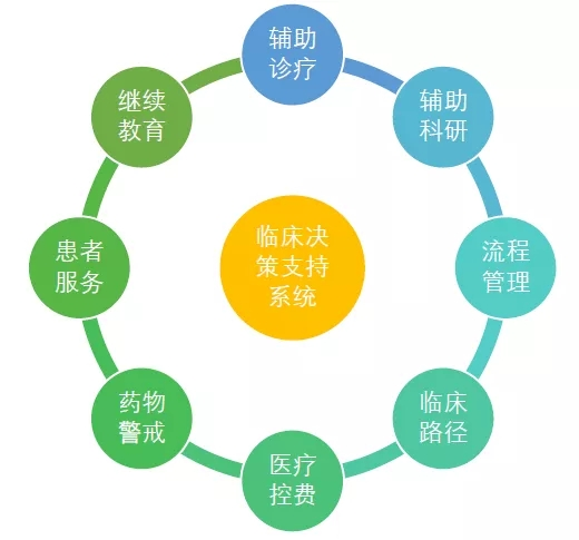 在结合了大数据的基础上,未来CDSS的功能可拓展至更广阔的空间,如医院/科室管理、科研协作平台搭建、结构化病历系统、患者交互及患者教育、医生继续教育、药物警戒、医疗控费等方向。在突破技术壁垒的基础上,进一步贴合临床实际应用场景,自上而下地推广标准化治疗,提高医疗服务质量及效率,促进医疗行业生态系统的健康发展。