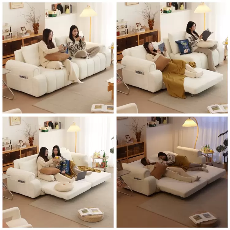 “奶油泡芙沙发床”的设计,从法式甜品的柔润形态中汲取灵感,以连贯的弧线与饱满的体块打破传统家具的几何约束,为紧凑的现代居住空间注入一抹灵动舒缓的美学笔触。其创新核心在于模块化自由组合结构与人性化的一键转换机制,能在数秒内实现从沙发到标准睡床的平滑切换,有效解决了小户型家庭对空间多重功能的现实需求。