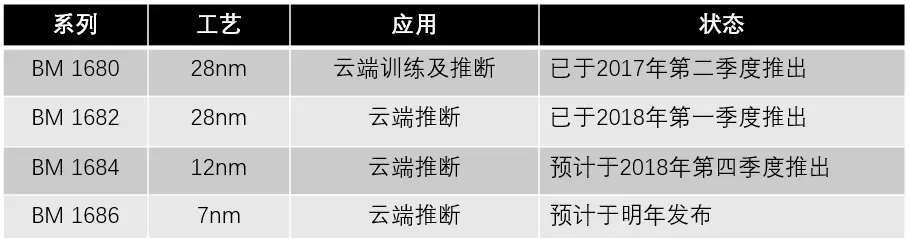 单看今年三月发布的第二代AI芯片SOPHONBM 1682,其训练计算性能正向英伟达目前应用最为广泛的Tesla P4 GPU(基于Pascal架构)的水平靠拢,且能耗更低。而按照比特大陆AI芯片当前以及计划的更新情况来估算,其迭代速度短于九个月/次;也就是说,比特大陆或许会先英伟达一步推出七纳米AI芯片。如果SOPHONBM 1686能够延续低能耗的特点,这家公司明年即将发布的第四代AI芯片将具有与这些科技巨头高端产品同台竞争的实力;毕竟长期运营过程中,成本低更具优势。