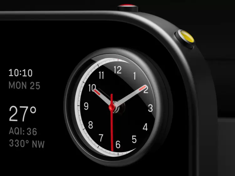 中控屏搭载于球型关节底座,可向驾驶员或乘客侧自由旋转,并配备掌托设计以实现盲操交互。机械式多功能显示屏由三组独立电机驱动,可切换显示时钟、计时器、罗盘或弹射起步指示功能。