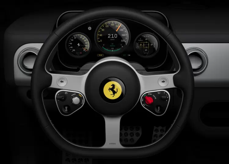 Luce内饰的选材同样彰显着艾维的设计哲学:采用阳极氧化铝与康宁特种玻璃,这两者正是苹果产品的核心材质组合。方向盘采用简约三辐式设计,灵感源自上世纪五六十年代的法拉利经典轮毂。其辐条由100%再生铝经CNC精密加工而成,由19个独立部件组成,较标准法拉利方向盘减重400克。