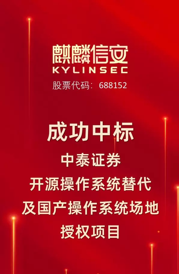 中泰证券是全国大型综合类上市券商,在全国28个省市自治区设有45家分公司、近270家营业部,形成了证券、期货、基金、投资等各项业务齐头并进的发展格局,其广泛而复杂的业务系统对底层操作系统的安全性、稳定性提出了极高要求。麒麟信安操作系统凭借卓越的产品性能和技术支持服务,在此次项目中脱颖而出,充分彰显麒麟信安在国产操作系统的技术实力和领先优势,未来三年,麒麟信安操作系统将持续支撑中泰证券各类业务系统稳定运行,为国产操作系统在金融证券领域创新应用树立新标杆。