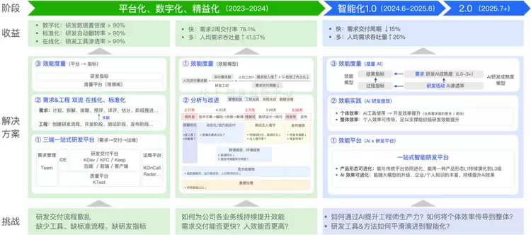 这一体系强调从人-工具-流程的全链路变革,使 AI 不只是编程助手,而是研发流程的参与者和协同者。