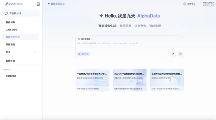 此次跃升该榜单第一名的九天AlphaData智能体由中国移动自主研发,旨在解决大型企业在数据分析中面临的普遍挑战。无论是业务人员的实时指标洞察、专业技术人员的快速查数需求,还是管理决策者的全局统筹分析,传统工具往往存在上手困难、效率低下、获数不便等局限。为此,九天AlphaData应运而生——它深度融合AI技术,集成数据问答、多轮对话、智能决策与可视化图表生成等能力,覆盖从数据查询、处理、分析到展示的全流程,真正实现了数据驱动决策的闭环。