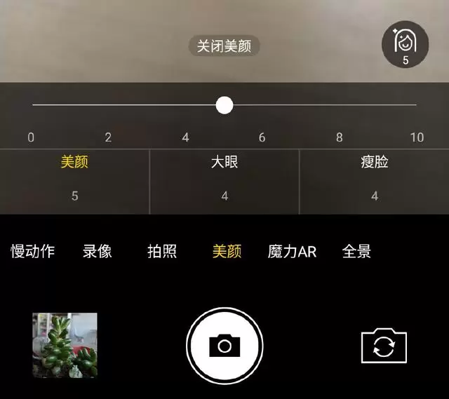 而更为有趣的在于其自拍功能,美颜在当今时代自然是必不可少,与大多数手机不同的是,在美颜的设置上除了能调整美颜程度之外,还单独有大眼、和瘦脸两个调整项,便于用户调节自己想要的美颜效果。