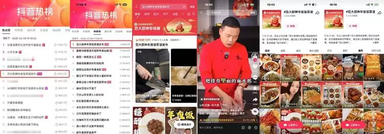 三场直播内容设计各有新意,直播主题各掀热度浪潮:南方场的 #年轻人才是年夜饭天赋型选手 强势出圈,年轻选手跳出传统年菜框架,让年夜饭多了几分新潮灵动;北方场解锁了北方面食的 N 种打开方式,花式做法让网友直呼 “大开眼界”,引爆 #北方人对面食的执念有多深 话题,一举拿下抖音总榜TOP1、种草榜TOP1;决赛场相关话题 #第一口春味是家乡的年味 登上抖音热榜前 5,选手们以 “春” 为命题,用家常食材和朴素做法诠释家乡年味,每道菜都藏着专属的新春期许,引发全网对家乡年味的情感共鸣,更吸引25年热门冠军星厨@屈雨瑜rain 两次共创活动官号发布美食制作短视频,呈现出叫好又叫座的新春美食内容盛宴。