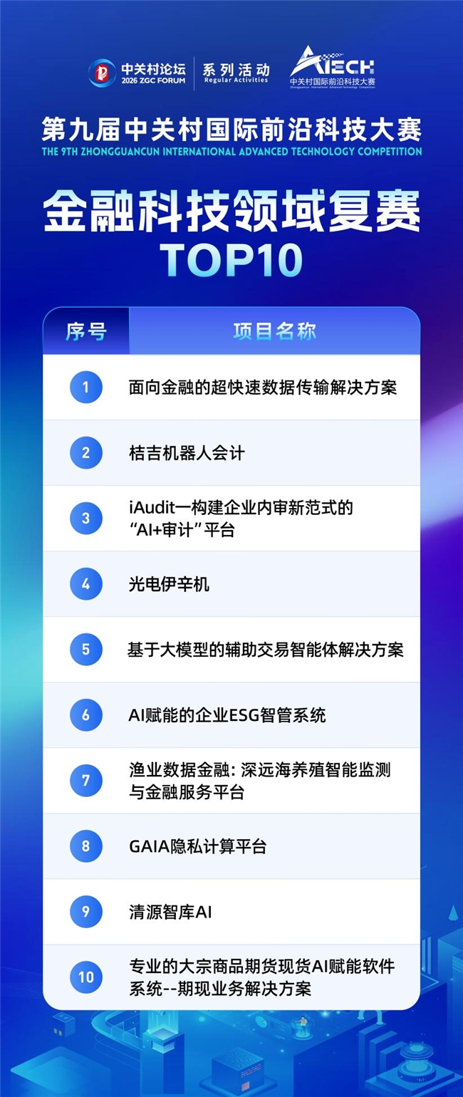 2月3日,2026中关村论坛系列活动——第九届中关村国际前沿科技大赛金融科技领域复赛,在北京市西城区新动力金融科技中心圆满收官。桔吉人工智能科技(深圳)有限公司携「桔吉机器人会计系统」强势突围,成功跻身金融科技领域TOP2,凭借代理记账AI、AI做账、AI会计的创新实践,成为财税智能化赛道的亮眼标杆,以桔吉人工智能的硬核实力,为合规账的智能转型树立行业典范。