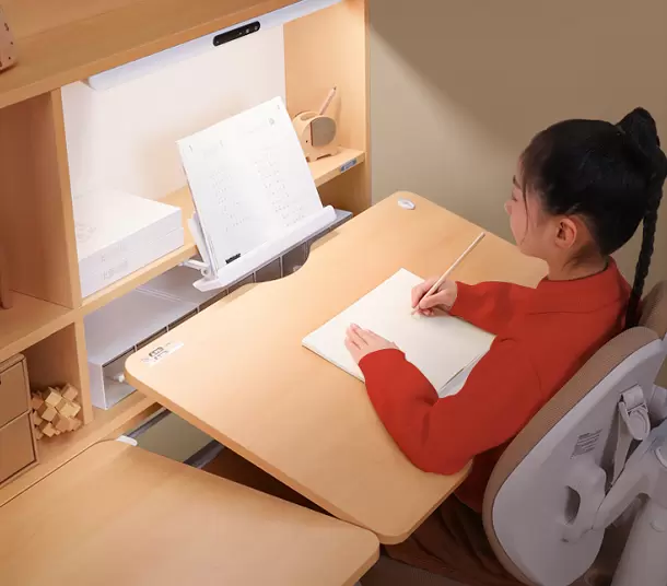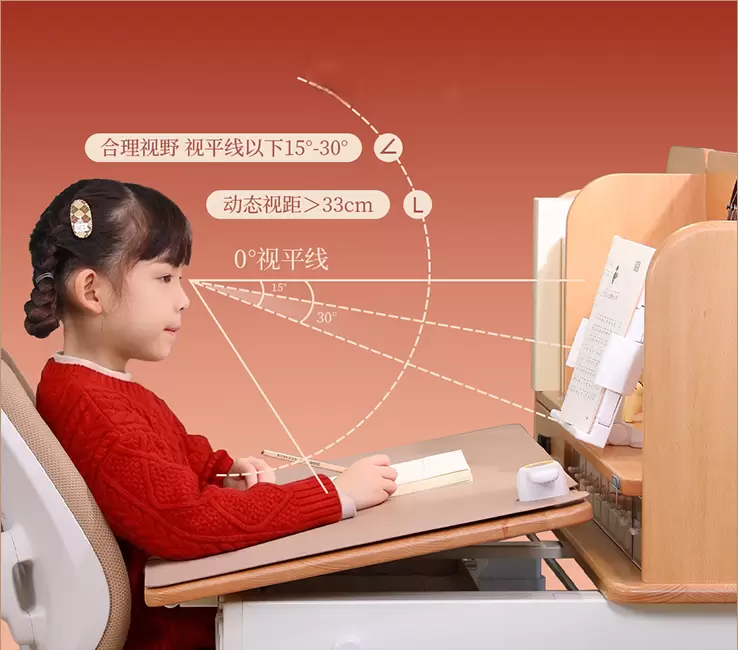 聚焦儿童近视预防痛点,该学习桌通过科学设计管控用眼距离,将书本置于前置阅读书架,同时保证孩子观看作业本的距离为33cm黄金视距,将传统的左右用眼切换为上下用眼,让睫状肌在自然切换中保持活力,预防近视,守护孩子探索世界的明亮窗口,用一份长久守护,传递新春最真挚的期许。