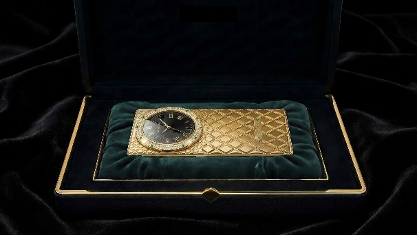 帝尊时冕系列,作为订单中的热门款式,其设计灵感源自高级钟表匠造精神,机身由18K黄金(AU750)筑就,表盘环绕密镶12颗天然祖母绿与钻石。经典的罗马时计盘面与黄金菱格基底相结合,实现了精密秩序与华贵质感的平衡。