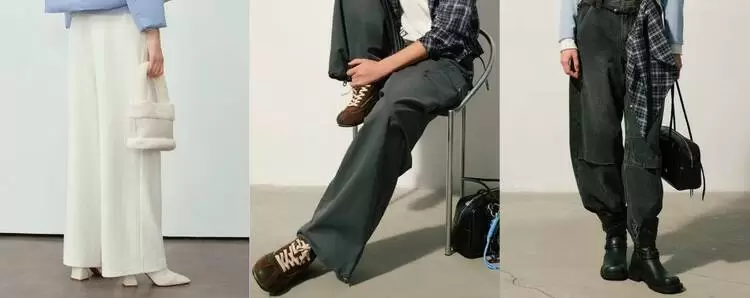 尤其值得一提的是,“超模裤”系列已成为品牌翻红的标志性爆款:高腰微喇/直筒/阔腿版型设计,结合加绒/糯米面料/修身显瘦工艺,精准解决小个子、梨形身材的穿搭痛点,穿上即显腿长、比例黄金。消费者反馈中,“超模腿”“显瘦神器”“闭眼冲都不踩雷”成为高频词。