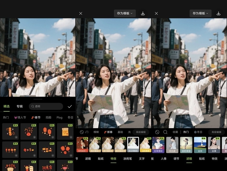 •海量模板,承包朋友圈:不想手动修图?没关系!海量独家春节素材&模板同步上新至灵感社区,创意拜年模板、新年氛围滤镜、醒图独家创意红包应有尽有,不用费心设计一键套用,朋友圈潮流这次由你领跑!