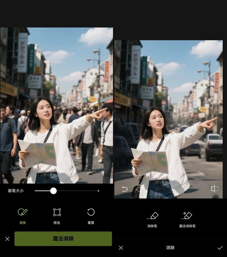 • 魔法消除,再挤的景区也能“包场”:春节景区人从众,拍照全是路人甲?鸿蒙版醒图「魔法消除」功能上线,手指一抹路人秒没——从此相册没有“群演”!