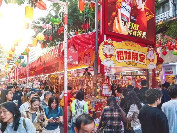 2026年2月13日,以“逛百年花市·品千年越秀”为主题的广州西湖路花市正式开市。今年花市复刻宋代“广州第一高楼”共乐楼为原型打造主牌楼,并设置“万马奔腾”等主题景观,将广绣、醒狮等非遗元素巧妙布设于街巷之间,让市民在移步换景中感受传统魅力。其中,杰森娱乐集团旗下人气IP“卡皮巴拉豚咔咔”的新春主题快闪活动尤为引人注目,机器人、机器狮巡游与潮流IP相结合,为市民带来一场别具特色的“年味”文化盛宴。