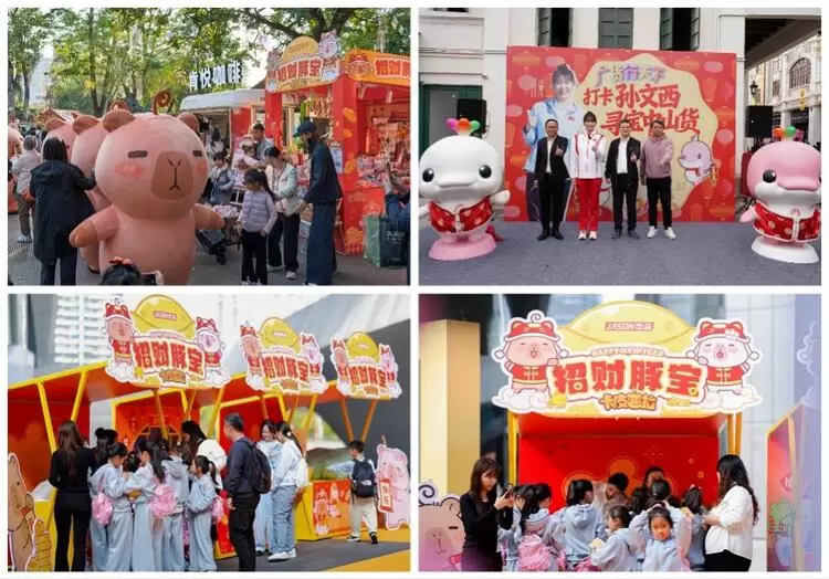 从广州花市、越秀灯会的民俗场景体验,辐射到全国多城联动的快闪布局,卡皮巴拉豚咔咔IP紧扣“招财”“松弛”等精准切中当代年轻人情绪的关键词,打造兼具文化内涵与社交货币属性的IP衍生品;另一方面,通过与传统节庆、城市文旅及大型盛典场景的渗透,构建了沉浸式、高互动的体验生态。杰森娱乐通过富有创意的IP产品与创新消费体验打造可玩、可分享、可收藏的新春仪式感,成功将IP融入多元场景。这不仅是IP商业价值的成功拓展,更是一次传统年俗与当代消费潮流同频共振的生动诠释。