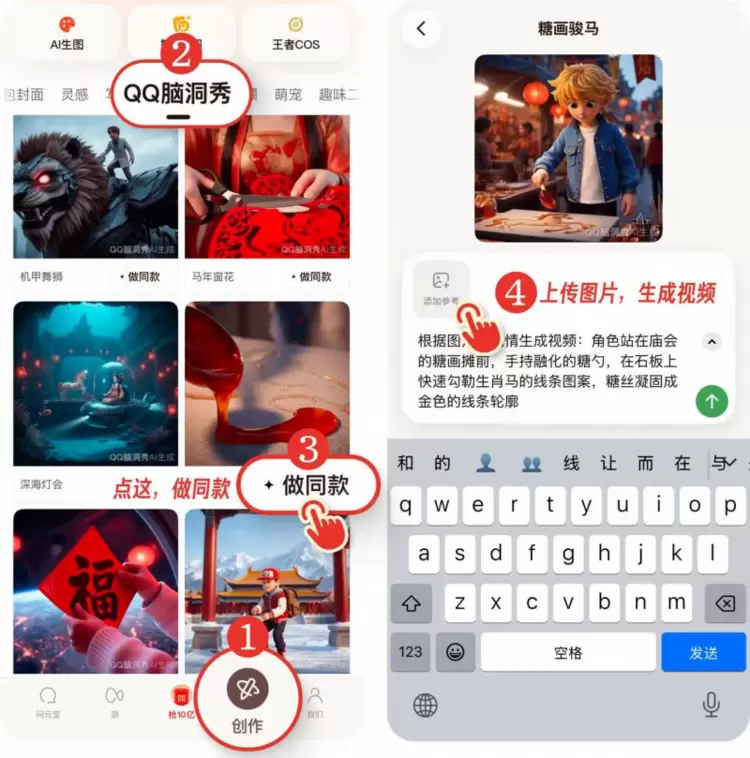 QQ新功能脑洞秀上线元宝,支持用Q版虚拟形象创作AI视频