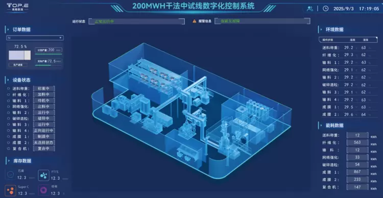 高能数造广州干法电极中试级示范线已实现每日20小时无间断连续制膜,稳定输出80-200μm厚电极膜,达成20m/min高速辊压不间断运行,成功打造「原料入-成品出」一站式闭环生产体系!实现200MWh年产能,不仅充分印证干法工艺产业化的可行性,更能切实助力客户单GWh成本大幅降低,高效提速全固态电池商业化进程,用硬核数据兑现干法量产能力!
