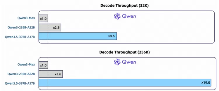 千问3.5推理效率大幅提升,最大吞吐量提升至19倍