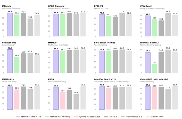 与前几代的千问大语言模型不同,千问3.5实现了从纯文本模型到原生多模态模型的代际跃迁。