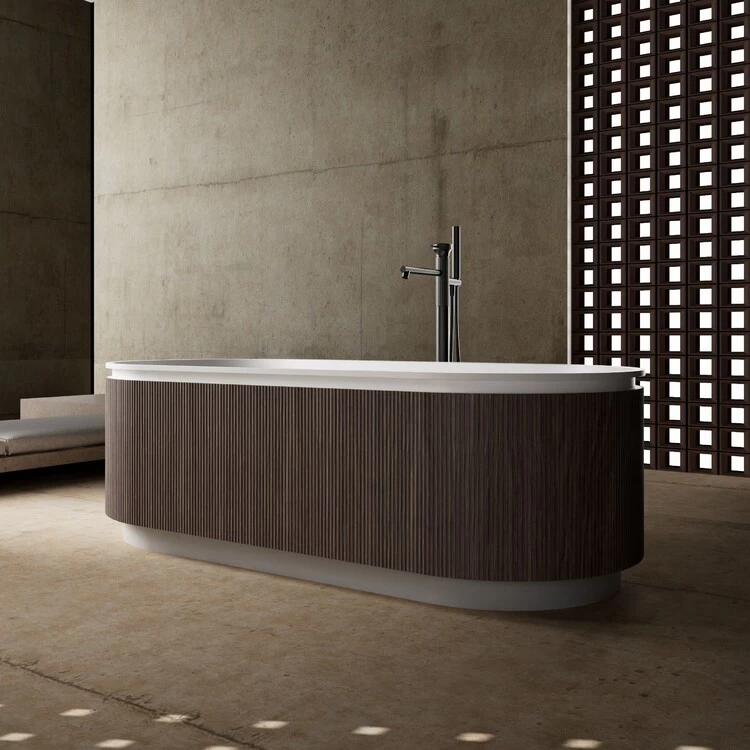 以北美黑胡桃木的竖纹肌理,在浴缸表面复刻森林年轮,将自然引入日常仪式;
