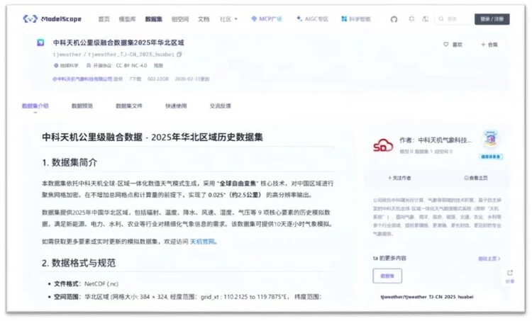 中科天机高质量气象数据集上线魔搭社区,携手共建科学智能新生态