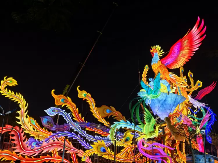 “百鸟归巢”灯组高约24米,以凤凰为核心造型,辅以厦门本土鸟类群像,通过追光与音效设计呈现立体视觉场景。