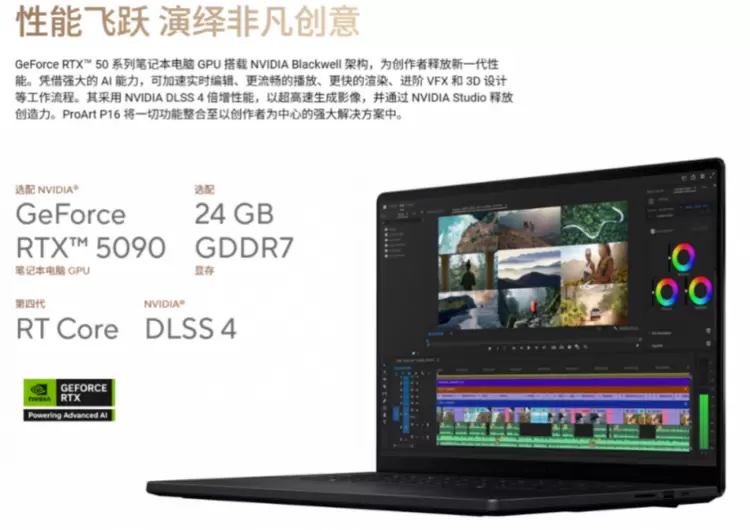 这得益于华硕ProArt 创16搭载了AMD锐龙 AI 9 HX 370处理器,以及 NVIDIA GeForce RTX 5090独立显卡,为从分镜到成片的AI生产提供了坚实的性能基础。