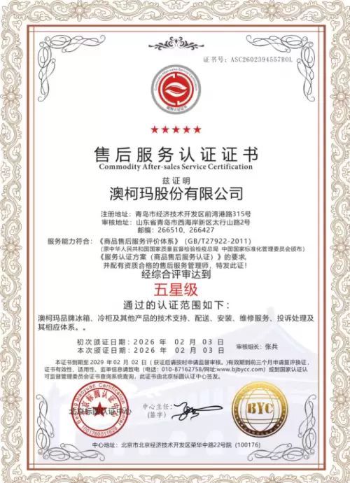 澳柯玛再获“五星级售后服务、五星级品牌”双五星认证