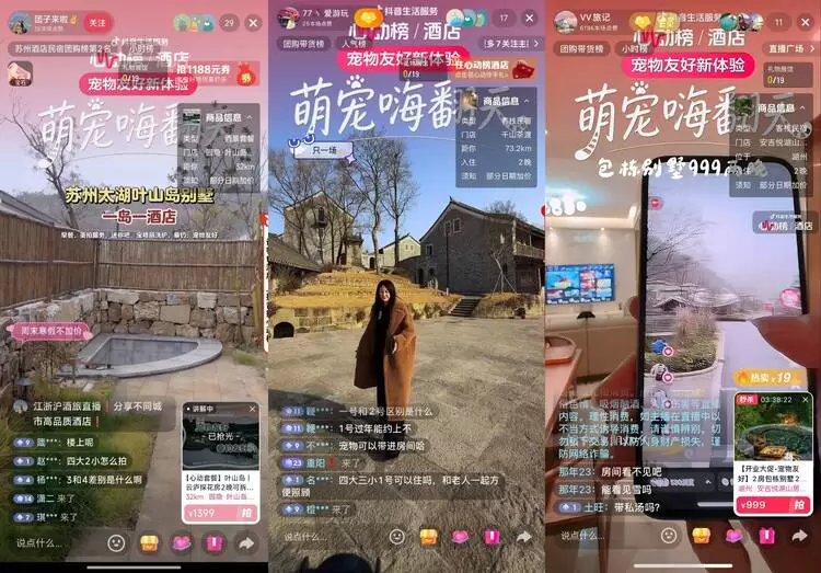 在“萌宠嗨翻天”系列直播中,酒店商家通过镜头直观呈现大堂、宠物房、宠物餐食、专属用品等每一个细节,真实还原“带宠入住”的全过程,让宠物友好的认知从抽象概念落地为可感知的体验。同时,为承接春节档消费需求,酒店商家同步推出多个抖音独家宠物友好货盘:宠物房套餐、萌宠入住礼遇、专属清洁服务包等,以差异化卖点精准击中养宠人群痛点,有效缩短决策链路,提升下单转化。数据显示,今年春节期间“宠物友好”酒店订单量上涨12%,突破5000万交易。