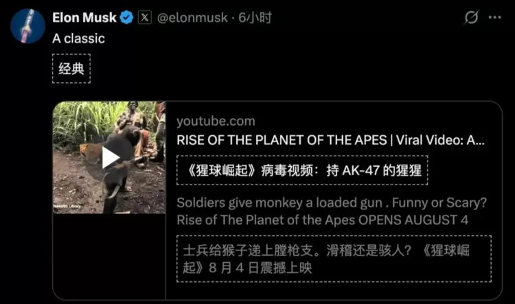 事后,她在社交平台分享了全过程,网友都坐不住了。马斯克更是转发了一个视频,并配文「A classic」(经典)。视频内容是几个士兵将一把AK47递给猴子,随即猴子向士兵开火。这波可以说是嘲讽拉满。也许是觉得不够过瘾,马斯克又转发了一遍,并再次配文:人们向OpenClaw开放了其整个生活的权限。