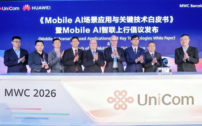 [西班牙,巴塞罗那,2026年3月3日]中国联通与华为在MWC26 巴塞罗那联合举办Mobile AI 智联上行创新发布会,重磅发布《Mobile AI 场景应用与关键技术白皮书》及 Mobile AI 智联上行倡议。立足智能体互联网时代发展需求,聚焦 “AI× 宽上行” 核心方向,凝聚产业共识、深化协同创新、共筑生态体系,开启上行网络发展新纪元。