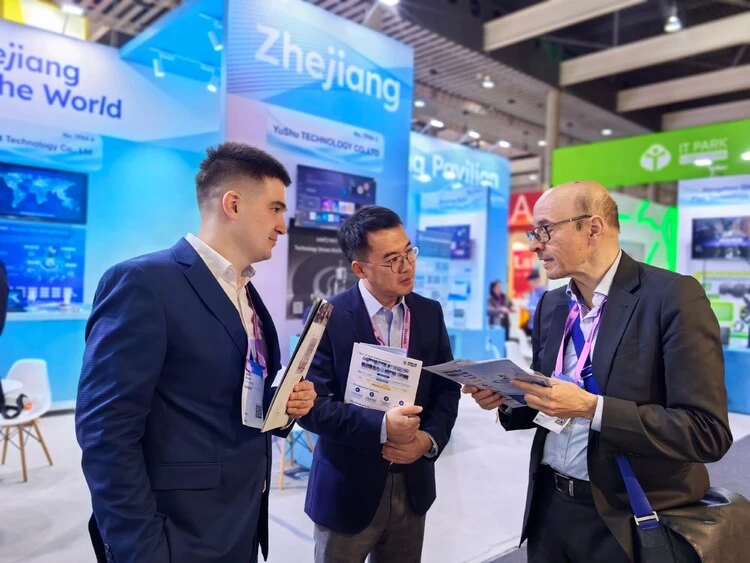 展会期间,慧博云通以“根植中国,服务全球”为主题,系统展示了软件技术服务、专业技术服务、产品与解决方案三大核心业务。通过场景化案例演示与专业团队的深入讲解,慧博云通向全球嘉宾呈现了涵盖人工智能、金融科技、大数据、移动研发测试及物联网在内的综合技术能力,生动诠释了技术服务赋能企业数智化转型。