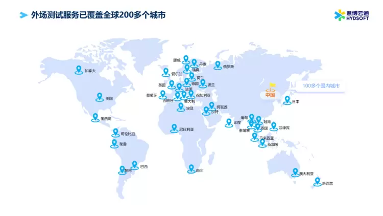 测试业务是慧博云通自创立以来始终聚焦的核心业务之一。公司持续深耕泛智能终端与移动通信领域十六年,已成为覆盖全生命周期、全技术栈的综合测试能力提供商,可为全球电信运营商、通信设备制造商、手机终端厂商、芯片供应商及ODM厂商提供全栈测试、认证测试与外场测试,服务内容涵盖从功能、UI、自动化,到硬件、性能、海外实测的全方位质量保障服务。目前,公司测试服务已覆盖全球200多个城市,可在多城市、多网络制式及多样化真实应用场景下,为客户产品提供可靠的质量验证与保障。