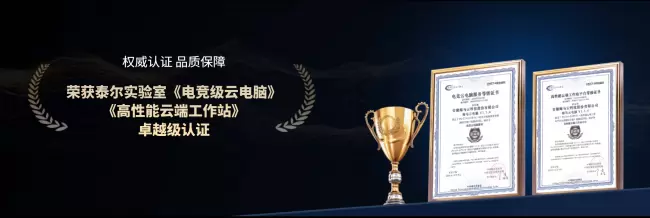 (图片描述:海马云电脑获得泰尔实验室《电竞级云电脑》、《高性能云端工作站》卓越级认证)
