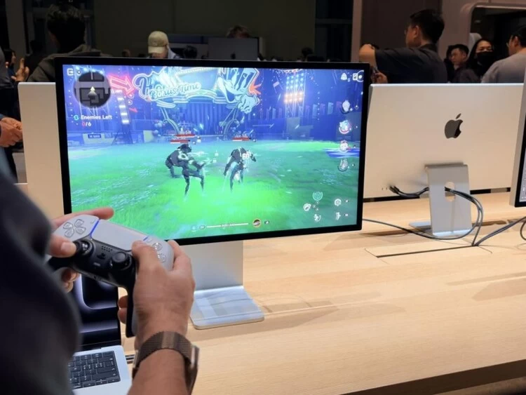 3月4日上海 苹果线下媒体体验会现场,工作人员演示《异环》游戏