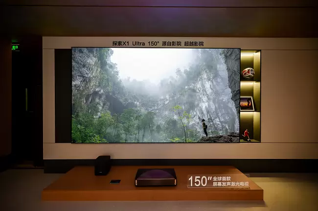 150吋探索X1 Ultra集成了海信激光电视的尖端显示成果,是行业唯一获中国电影科学研究所认证的“家庭观影放映设备” 电视。凭借2颗全球⾸发的MCL39激光器、SST架构以及DMD光芯片等电影院同源技术,配合菲涅尔无源抗光屏,150吋巨幕带来“电影感”艺术享受的同时,更开启了家庭观影放映级时代。绿茵场上草坪纹理与运动细节毫厘毕现,观众在舒适的居家状态下,也可获得如临球场看台的震撼感。