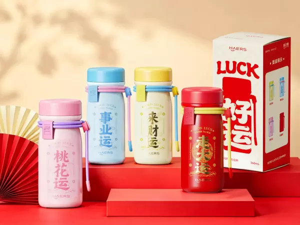 这正是哈尔斯“好运盲盒杯”的设计初衷。其核心在于将社会情绪转化为可购买、可拥有、可日常陪伴的具象物品。情感符号直击痛点:“桃花运”、“事业运”、“来财运”——三种基础款设计,精准对应当代年轻人最普遍的核心关切与焦虑。而隐藏款“走大运”,则巧妙引入了稀缺性体验,将购买行为转化为一份充满惊喜与期待的情感仪式。