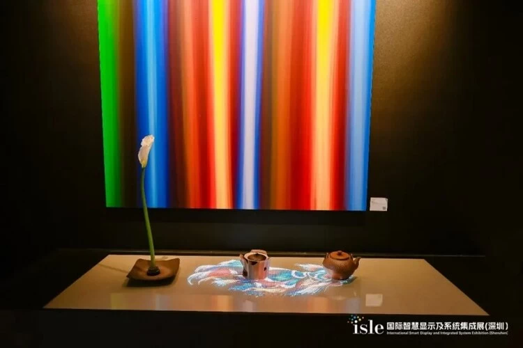 产品创新采用可艺术化定制的高端纹理处理(木纹、金属、石材等),可无缝融入家居或高端商业空间。您可以移步展位现场的“沉浸式艺术照明空间”,看纹理屏与观念艺术家滕斐的画作相映成趣,在洲明旗下 “爱加照明” 的高端室内灯具映射下,科技与美学双向奔赴。