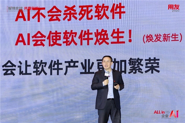 王文京认为,AI不会杀死软件,AI会使软件焕生(焕发新生)。AI会推进软件的结构变化、形态革新、价值升维、模式升级,大模型、智能体、本体、技能包(Skills)等都是AI时代软件的新形态。AI让软件使用更简便、普及更迅速,并为软件的研发、交付与服务带来10倍以上效率提升的革命性生产力工具,会让软件产业更加繁荣。