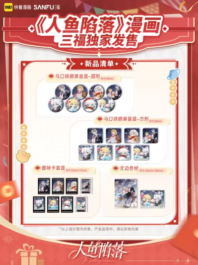 随着“谷子经济”持续升温,二次元IP周边正成为年轻消费市场的重要增长点。今年2月,快看漫画正式开启首届新春吃谷节,包括《人鱼陷落》《小蘑菇》《心动的分贝》《帮我拍拍》等10大高人气IP周边新品现货同步上线,并在1000多家线下门店集中发售。作为本次活动的核心IP之一,《人鱼陷落》凭借强大的粉丝基础与爆款周边表现,再次展现出优质漫画IP在消费市场中的巨大潜力。