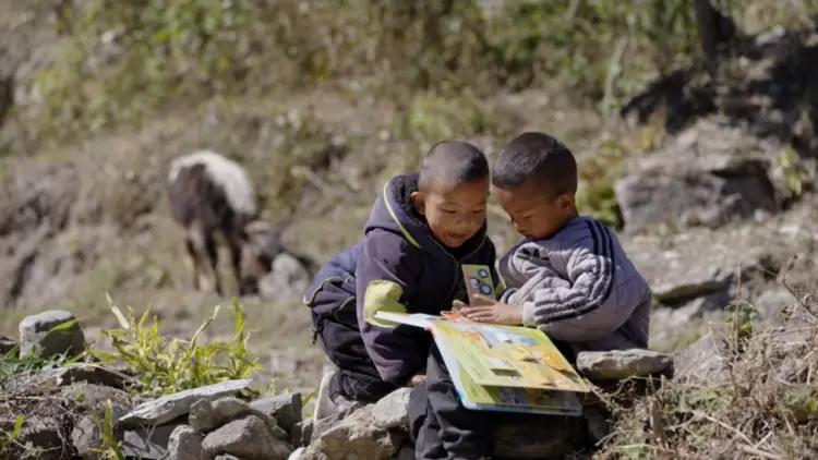 四川甘孜九龙三垭乡幼儿园的宝宝们,在看绘本点的书。