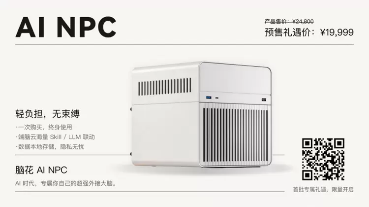 端脑科技全球首款原生本地 AI 智能体硬件「脑花 AI NPC」(龙虾盒子)正式开启中国区限量预售!兼具 AI NAS 核心能力,以私有化部署打造专属本地 AI 体验,堪称全场景适配的智能个人 AI 助手。