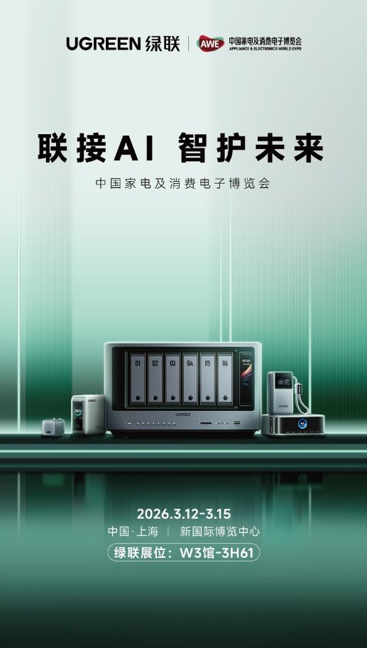 AWE2026开幕在即,3月12日至15日,上海新国际博览中心W3馆5H61展位,绿联诚邀广大用户、行业伙伴与媒体朋友莅临现场,一同见证前沿技术与生活场景的深度融合,解锁 “联接 AI,智护未来” 的全场景智能生活新可能。