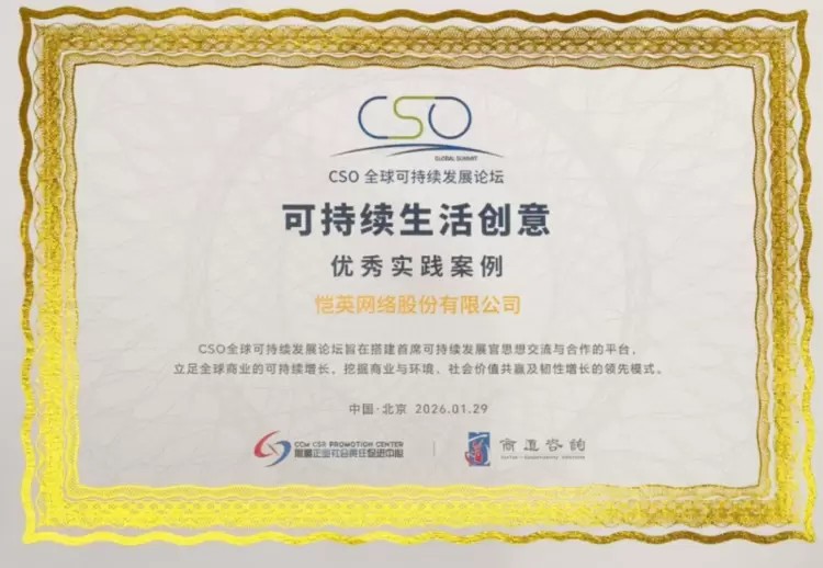 在ESG理念深度融入企业发展、数字内容成为可持续生活传播重要载体的行业背景下,游戏企业正凭借数字化、互动化优势,探索“娱乐+公益+环保”的可持续发展新路径。2026年,2026CSO全球可持续发展论坛在北京举办,恺英网络凭借在可持续发展领域的创新实践与社会价值,成功入选“可持续生活创意优秀实践案例”,彰显游戏企业在绿色发展与社会责任领域的标杆影响力。