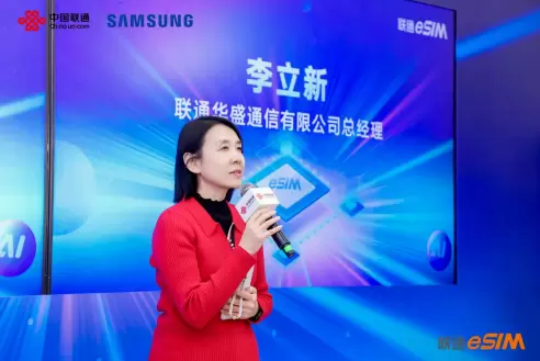 上午10时,首销仪式正式启幕。联通华盛通信有限公司李立新总经理在开场致辞中表示,eSIM技术正驱动产业深刻变革,中国联通全力将变革红利传递给用户。同时,立新总宣布三星国内首款eSIM手机Galaxy S26系列正式上市,并推出专属eSIM权益礼包,未来将继续与三星等伙伴携手创新,共创“无卡化”便捷未来。